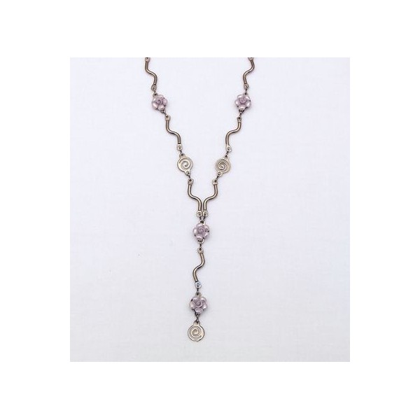 Collar Click Collection montado sobre acero negro. Flores de color lila nacarado..